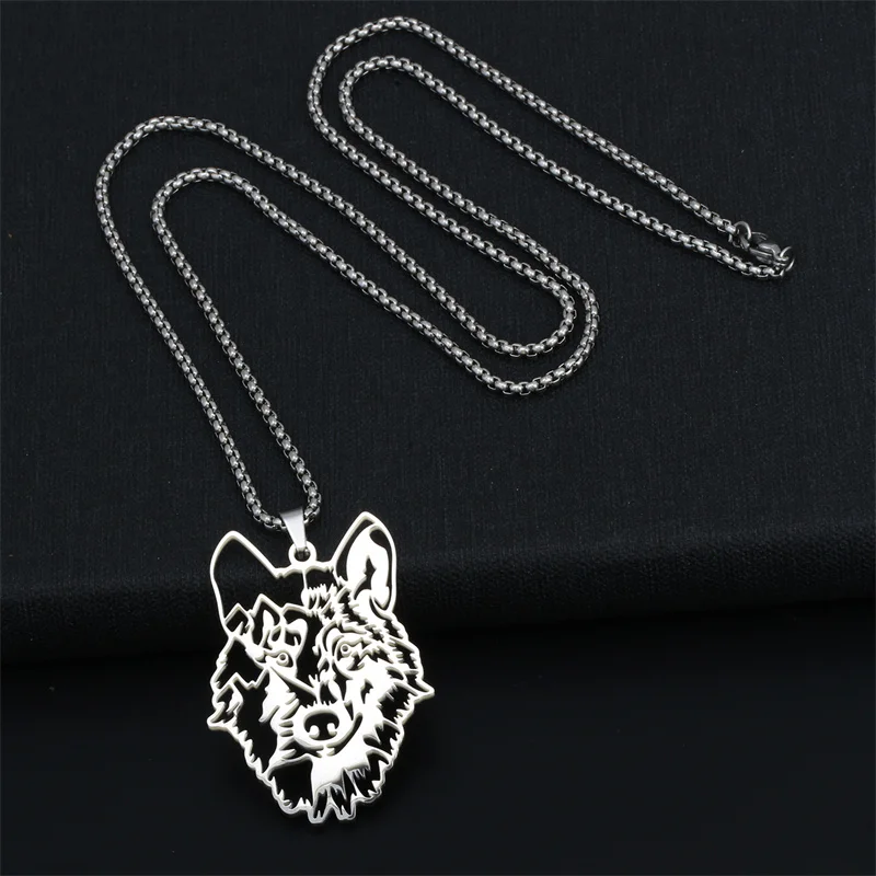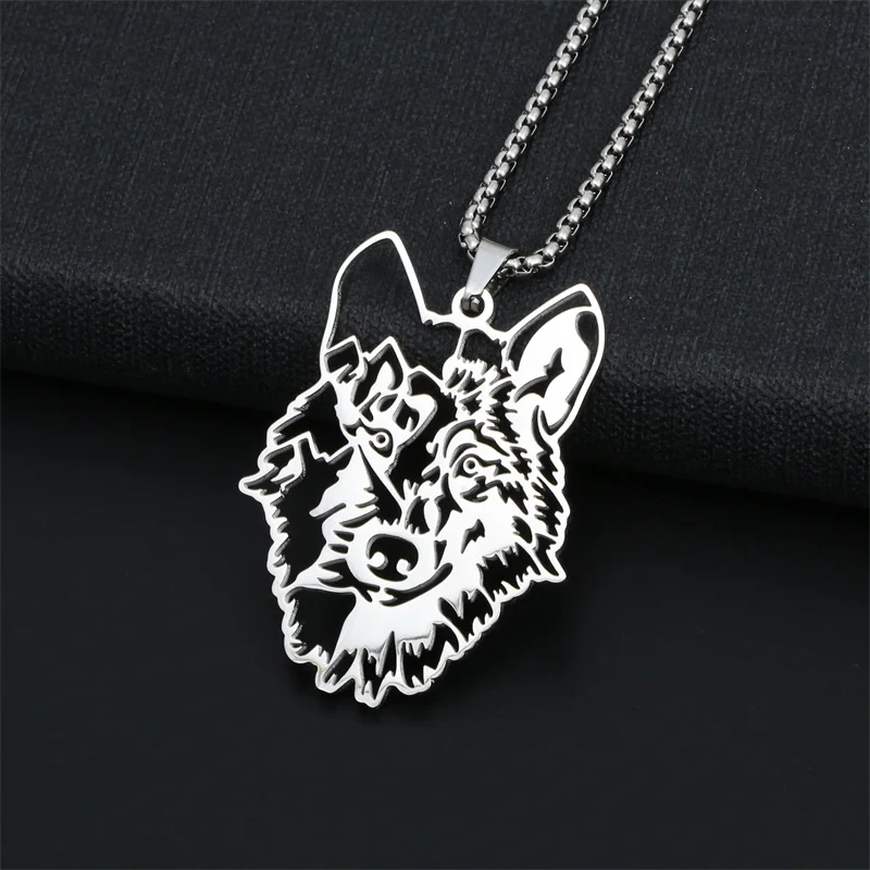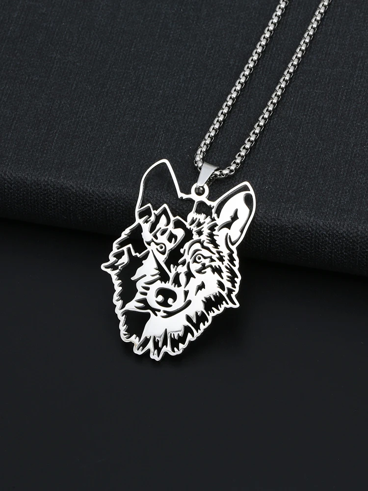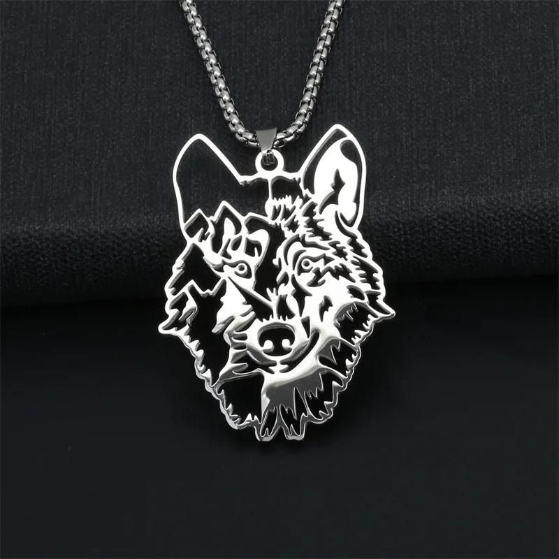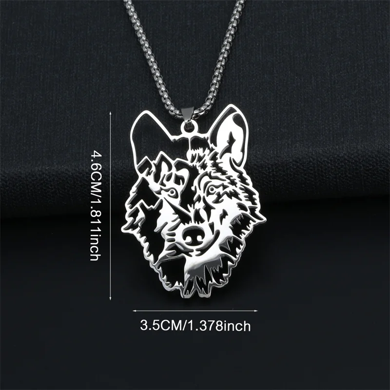 Men's stainless steel Wolf necklace, hollow animal head pendant necklace,