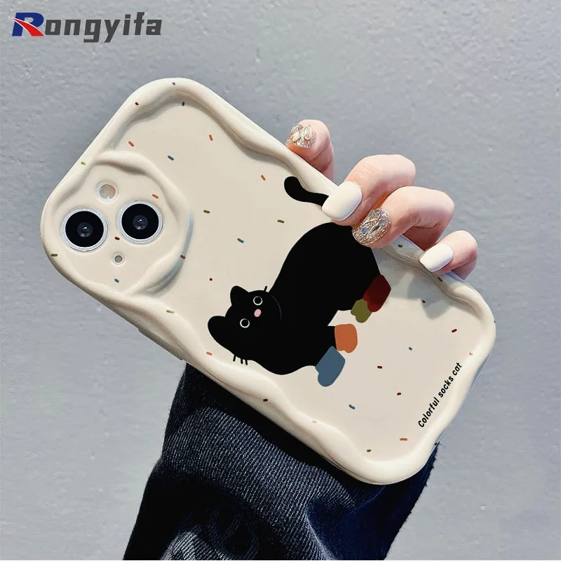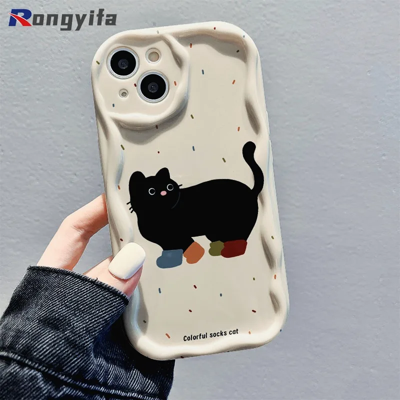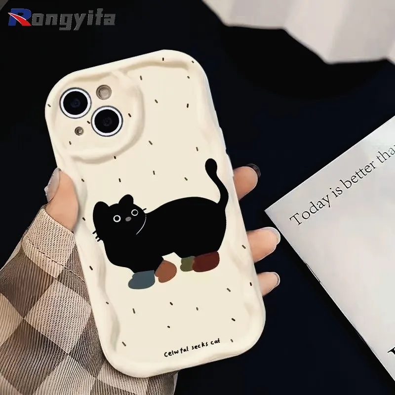 For Samsung Galaxy A05S A04E A3 Core M02 A02S A14 A13 A12 M12 A11 A72 A52S A22 A32 M32 Phone Case Black Cat Cartoon Soft Cover